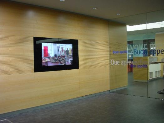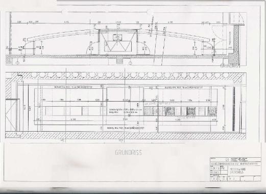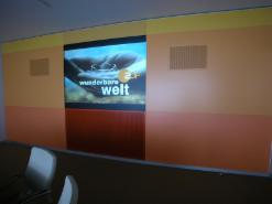 Beispiel - Entwurf / Skizze der Medienwand Draufsicht mit integrieten Großbildsystem (Beamer)
